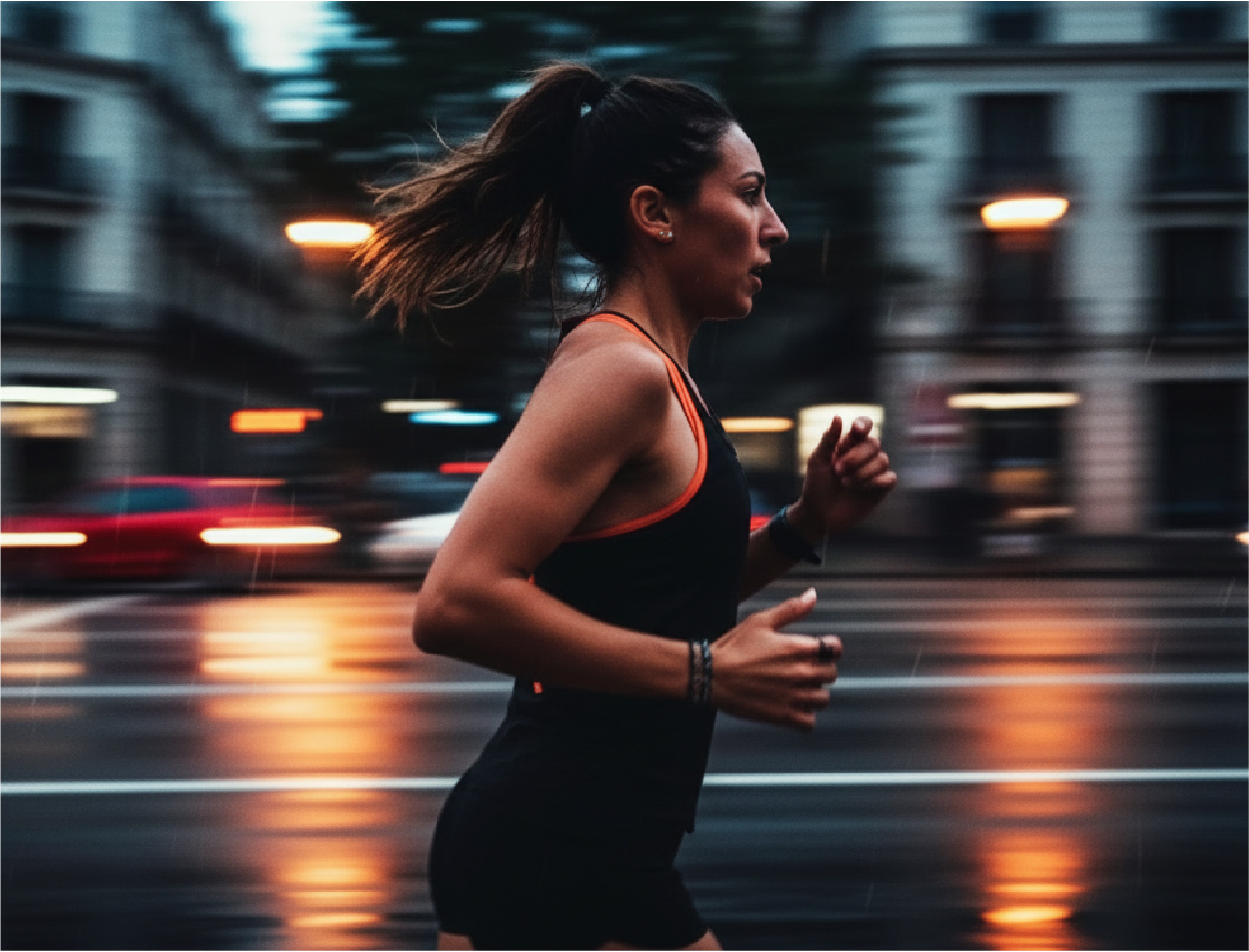This visual direction is designed for a contemporary performance campaign: real people pushing their limits, the city as the track, and a tone that blends everyday grit with a documentary feel. It doesn’t rely on polished perfection, but on visual authenticity—movement, breath, noise, real light. The product comes in later as a natural consequence of that world: if the night is tough, performance has to hold up.
